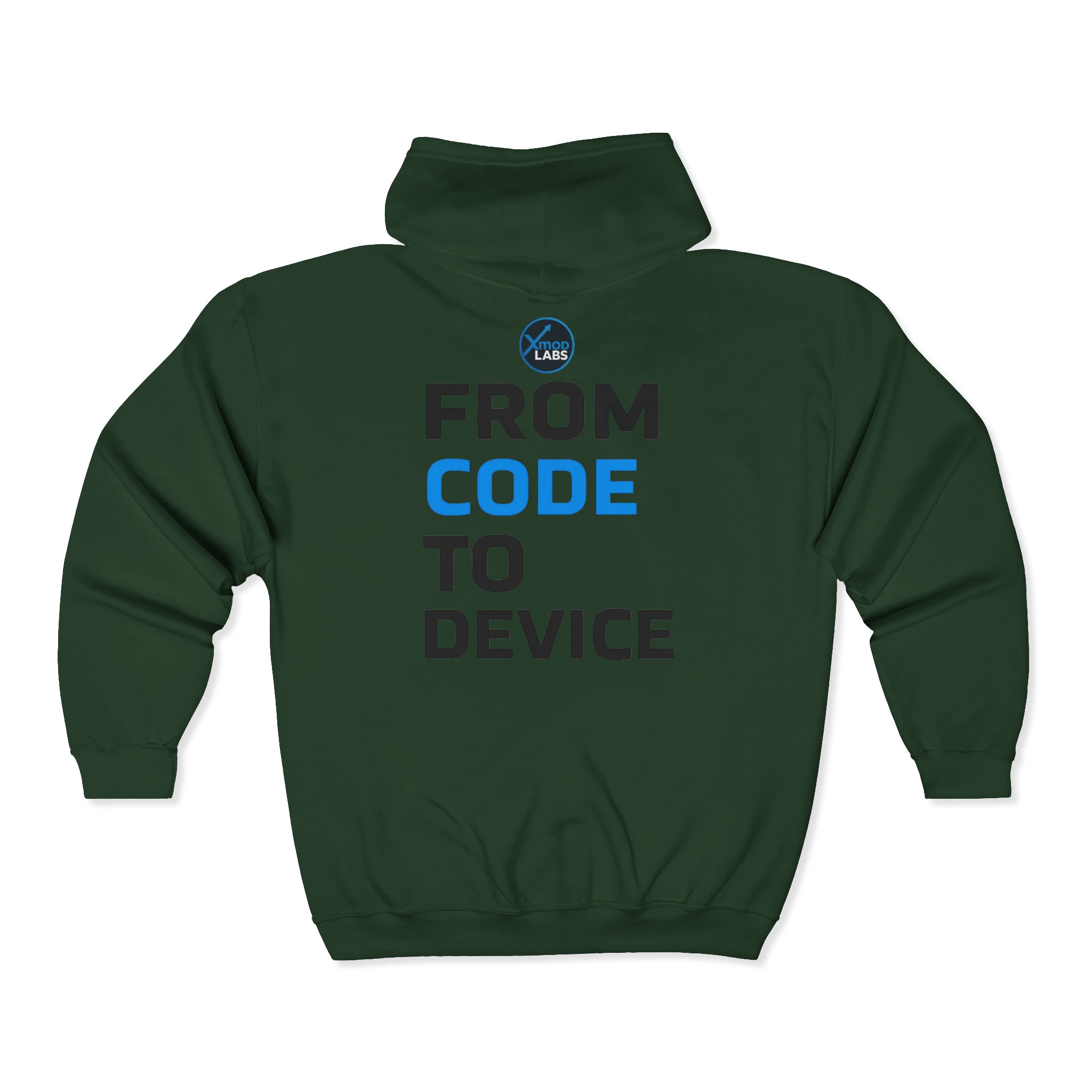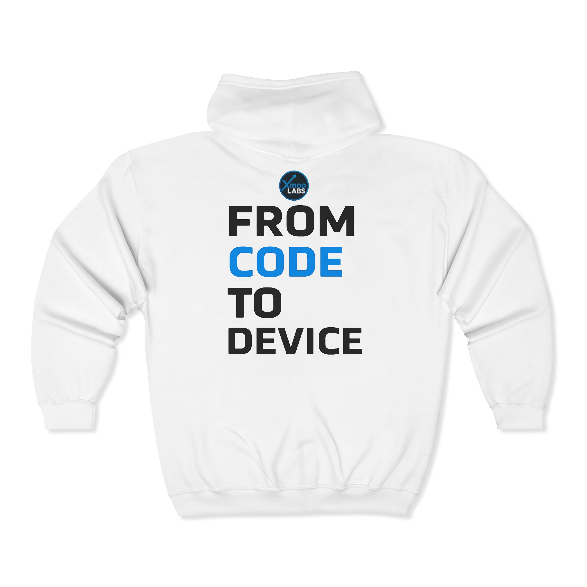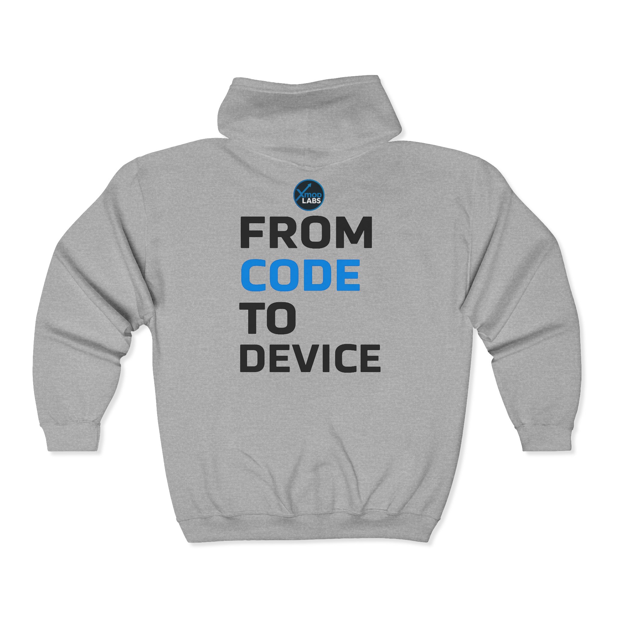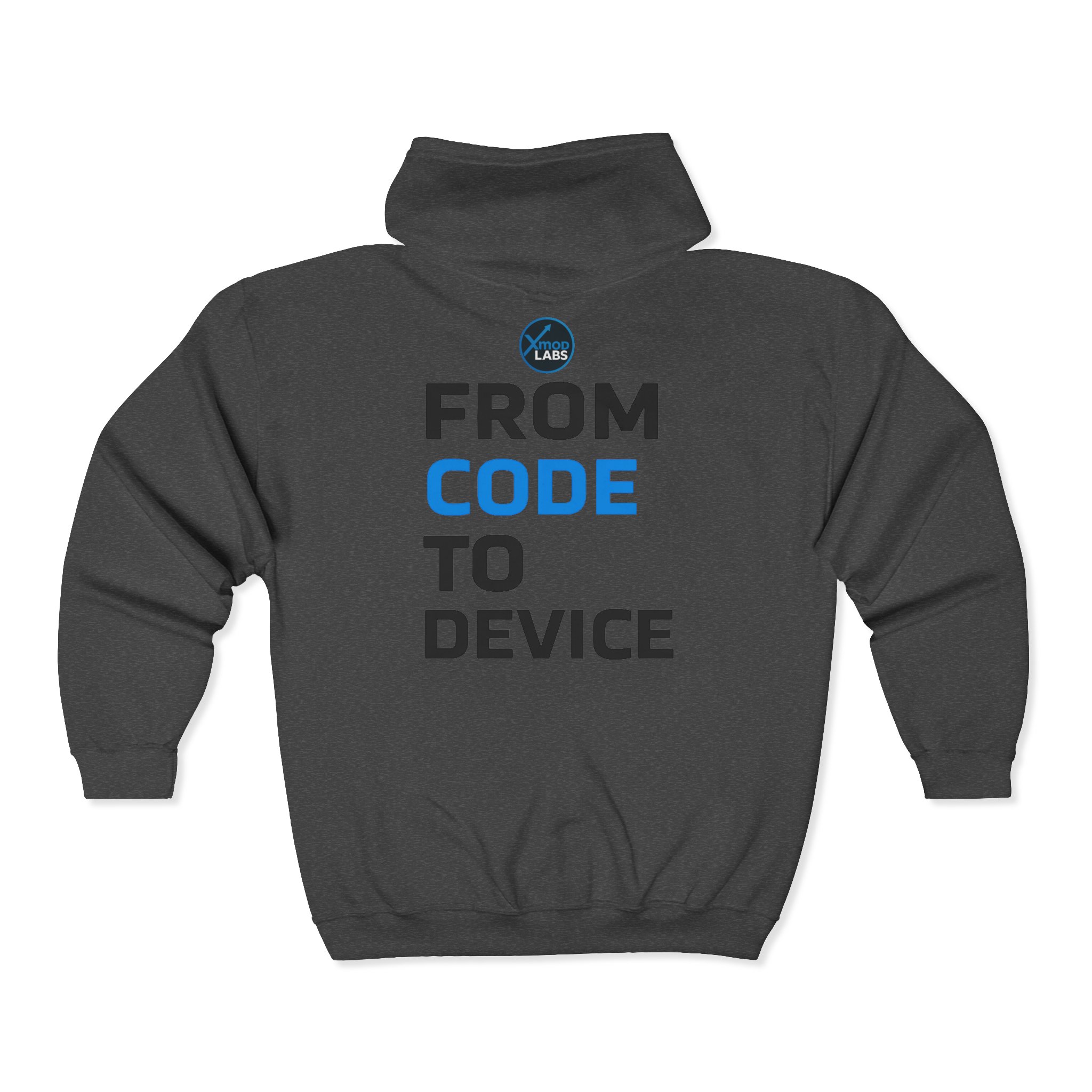 Engineered for creators who live between lines of code and real-world builds, this premium zip-up hoodie brings the xmod4u identity to life. The front features the signature xmod4u mark, while the back carries the xmodLabs logo with the defining caption “From Code to Device” a statement of how ideas become hardware.