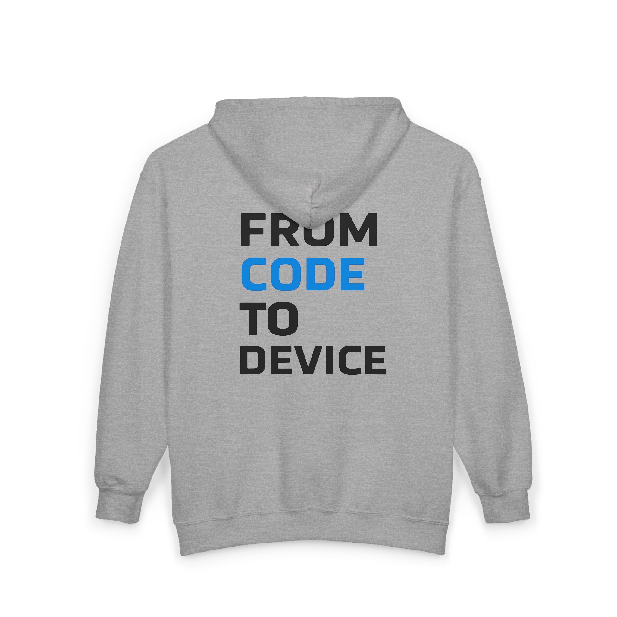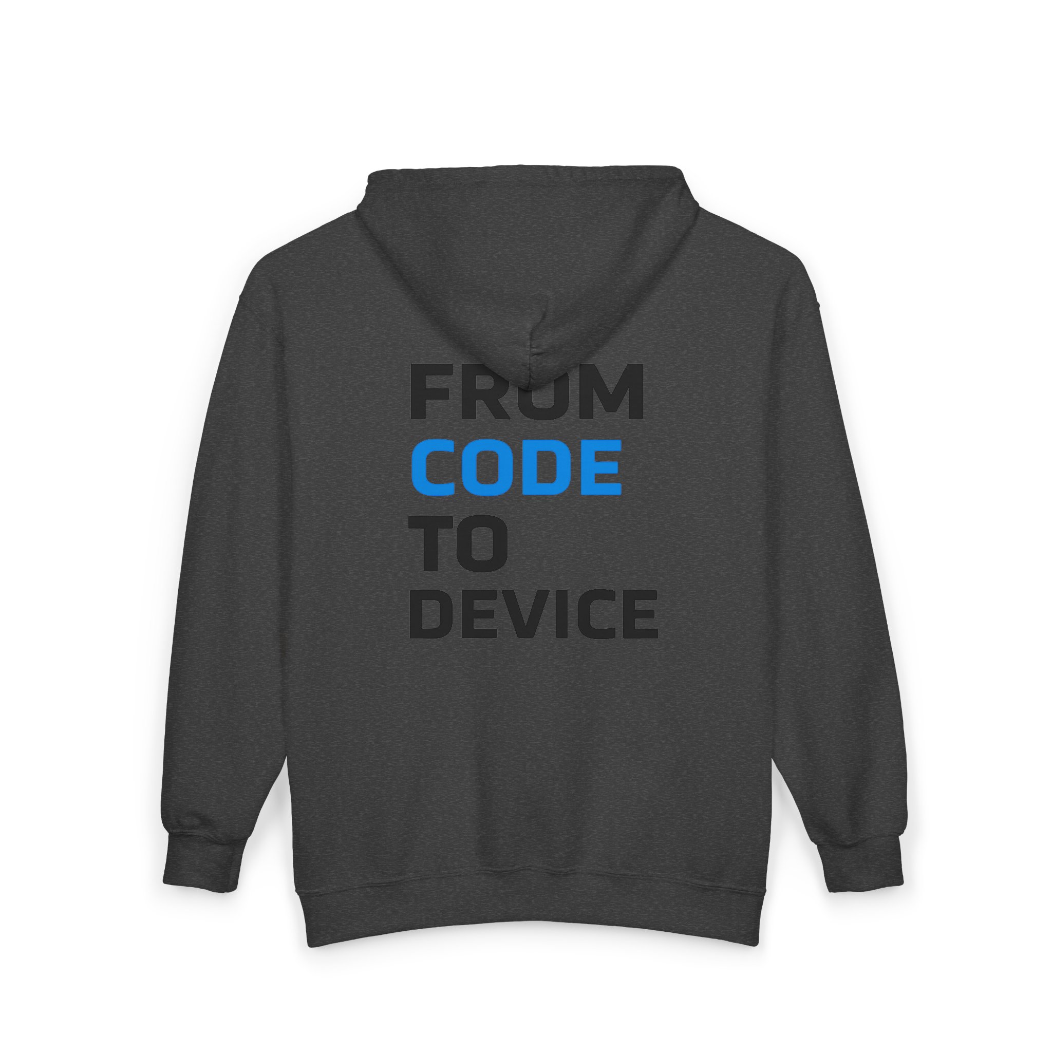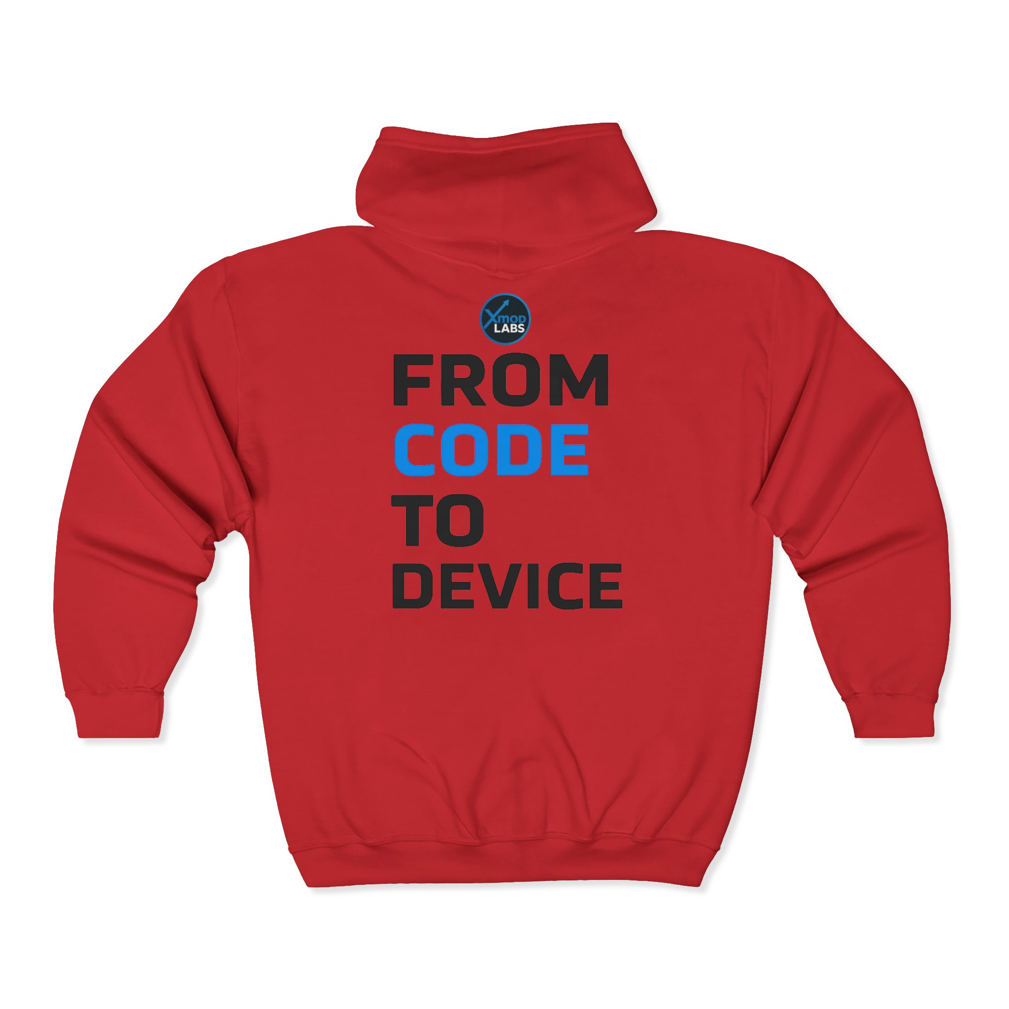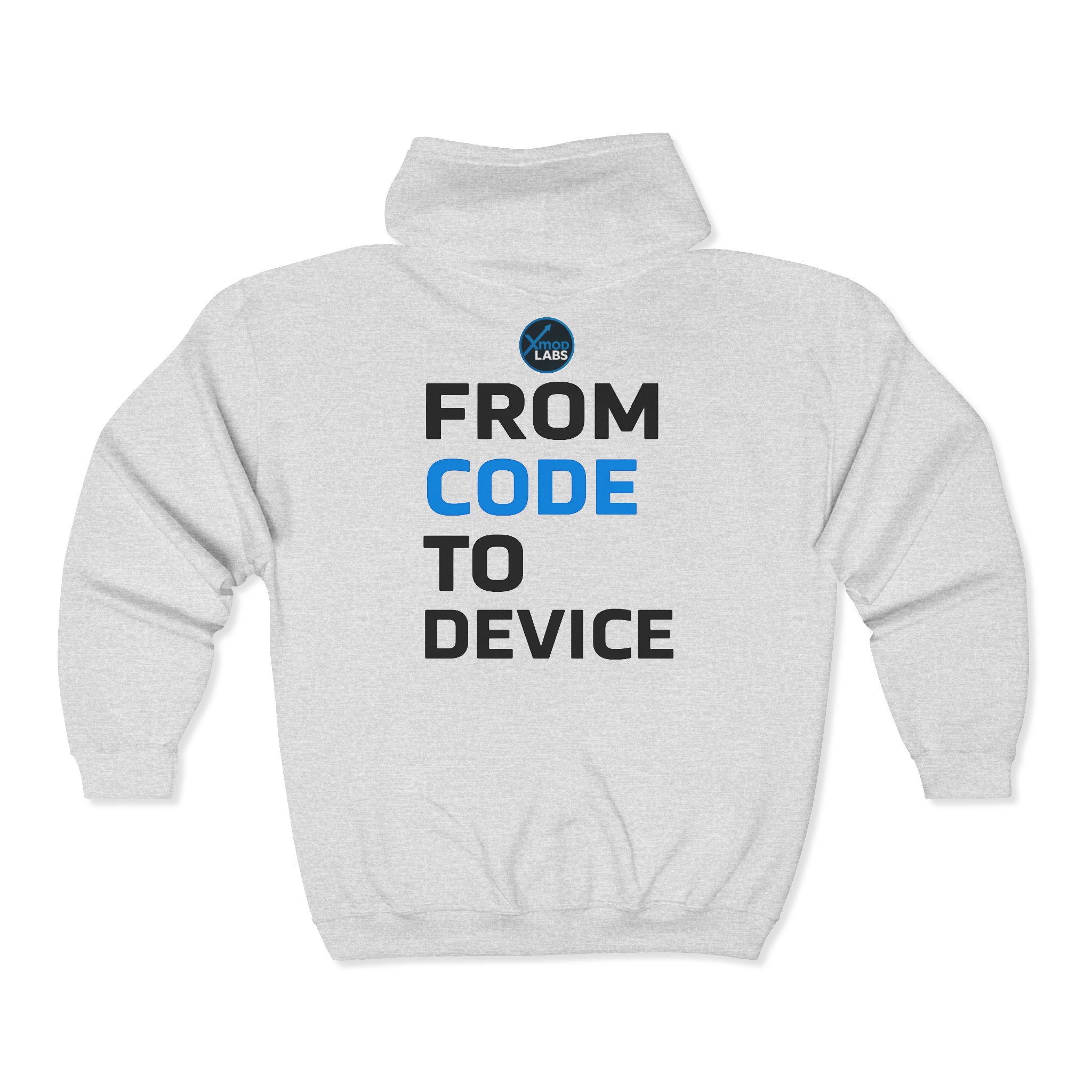 Engineered for creators who live between lines of code and real-world builds, this premium zip-up hoodie brings the xmod4u identity to life. The front features the signature xmod4u mark, while the back carries the xmodLabs logo with the defining caption “From Code to Device” a statement of how ideas become hardware.